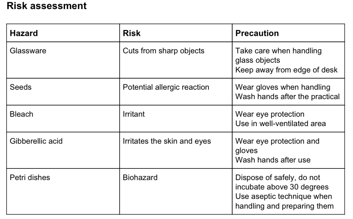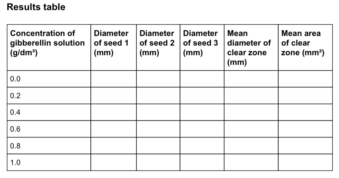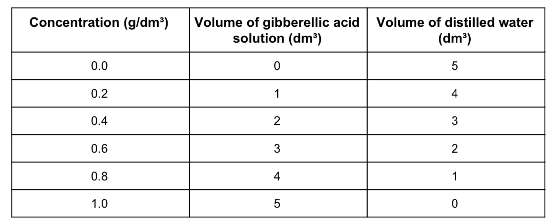 Before the experiment the different concentrations of gibberellins must be made up using varying