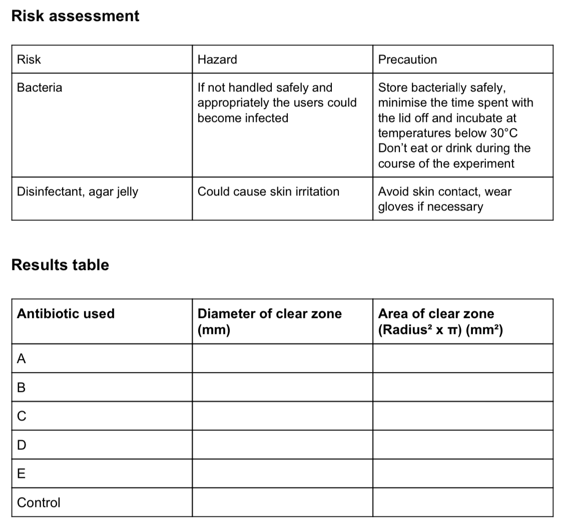 and this will be shown by the clear area produced around the sample of each antibiotic.